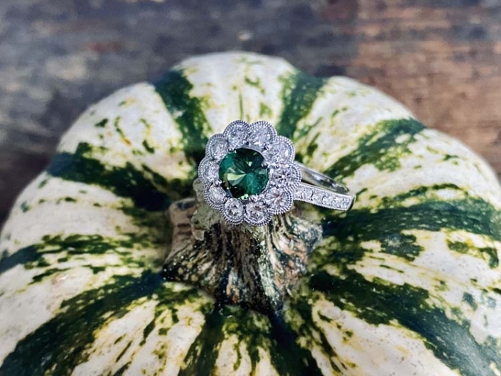 18K White Gold, .65 ct Maine Green Tourmaline, .78 ct tw Diamond Ring  $2,047-